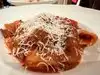 We ordered the meatballs as an appetizer. Waiter said they were very large. $28 for 2 meatballs! They were good but way overpriced. I had the chicken parmigiana. It came with cauliflower and mashed potatoes. Both cauliflower and potatoes were cold! Chicken was a nice portion but had absolutely no flavor. My husband had the Bolognese and it was good.