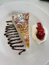 We went for lunch just three of us . As we have been here before we were looking forward to a grilled Veal Chop which is by far the best I have ever had anywhere else Unfortunately the lunch menu does not include the Veal Chop grilled just as a crumbed chop. Instead I had a salad with grilled Shrimp. There were three very large delicious Shrimp . For dessert I ordered an Italian Cheesecake. I have not tasted a more fabulous cheesecake ever. This Cheesecake is a must if you are a Cheesecake eater