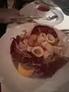 The bread did not taste fresh. It was served with lentils and olive oil. The lentils had a good flavor. The calamari were tender and tasted good with just lemon. However, they came with a bland marinara. Finally, I ordered pasta with Italian sausage and broccolini. It was disgusting. There was so much broccolini and leaves that the sauce had turned into a bitter green slurry. Everything was covered in green slime. The pasta, the sausage, the garlic, etc. I should have sent it back but I was too tired and didn’t feel like arguing. The lady next to me sent her dish back twice. Not kidding. I would never eat here again.