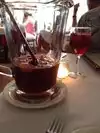 Driving down from the Nikon building on Wilshire Blvd, I got super hungry around lunch hour. Was heading down San Vicente Blvd to eat at a Thai restaurant when I noticed the La Paella sign. Was just talking to my cousin how years ago when I was a teenager, circa 1980s, there used to be a truly authentic Castillian place on Wilshire Blvd where I loved eating Spanish paella. Lo & behold, I spot the La Paella sign. So it was providencial that we had this seafood mix paella. The huge shrimp, mussels, and clams were remarkably scrumptious. Though I must say that the Sangria glass was just so-so. However, Tudor was a gracious host. The place had a lovely ambiance, and was quite popular among several other folks who dined for lunch. Overall, we had a wonderful dining experience, and would recommend this place.