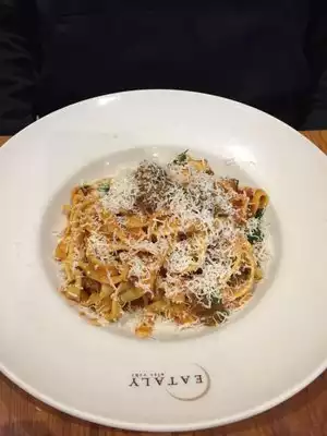 When arriving at Eataly, it's easy to get lost between the parts of the shops and the many restaurants it contains. La Pizza & La Pasta sits all the way in the back in a crowded part. I was seated at the bar at the busy passageway slap bang in the middle of the hustle. I came here initially and had a pasta with ragu which was really nice, I saw the pizza pass by and decided to come back a few days later for it. Both meals were very good and at a reasonable price. The only downside was how busy it was while sitting at the pass / counter. As the passageways are narrow, you will constantly feel the waiters passing by which can be a little disturbing.