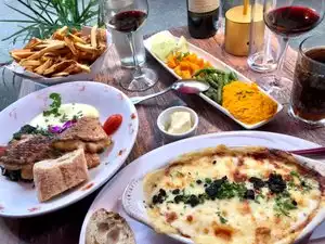 Delightful French restaurant with ample outdoor seating. A wide assortment of excellent classic French dishes from pates to French onion soup and escargot. Both the salmon and Cornish hen main courses on the price fixed dinner were excellent accompanied by a selection of seasonal vegetables. Service was excellent