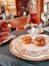 I do need to say that this place is worth going to just for the ambience. The tea is served in a salon which is beautifully decorated in the Victorian Style which creates exactly the right atmosphere for a grand afternoon tea. The service is delightful, friendly and prompt. Now that I've said that, on to the dining experience itself: The amuse bouche tart was delicious, the sandwiches were small and indifferent and obviously not feshly made, the cranberry scones were dry although it was good to see real clotted cream. The specialty cake which was a layered crepe affair with vanilla creme anglais and raspberry coulis was interesting and very tasty and the last course petit fours were just OK but nothing special. The tea (I had the Lady Mendl brew) came in a pot but was made using a tea bag. I'm afraid that I am a bit of a stickler for proper afternoon tea brewed from loose leaves. Overall it was a decent experience, but I cannot say it was perfect afternoon tea.