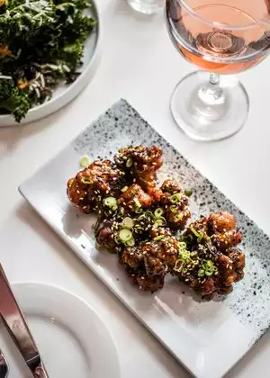 Went for my wife's birthday dinner. She's vegetarian, and it's great when she can order anything on the menu, without having to hunt and peck. We ordered a number of dishes- all tapas style, and seasonal- and everything was excellent! Mix of Asian-inspired and Americana. Truffle mac and cheese with mushroom bacon was awesome. Fried broccoli with an Asian glaze also wonderful. The drinks are all wines and wine-based cocktails, so lighter cocktails, but inventive. Will be back for a summer course of tapas here, for sure. Large sparkler with our creme brulee was a nice touch.