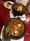 Although I was told that the owners were Mexican and Hungarian, the menu was fairly typical Mexican, with a few unusual items, emphasizing Veracruz-style seafood dishes. My wife had chicken mole and I and our friend had molcajete, which is a house specialty. She liked the mole but it tasted rather bland to me. The molcajete is essentially a stew containing jalapenos, cactus leaves, broth and chicken, shrimp or beef. Without knowing how to eat this, I scooped it into corn tortillas and rolled them up. Despite the jalapenos, this was rather bland yet wet and messy to eat. I tried this dish because I wanted something other than familiar Mexican food, but in retrospect, I should have stayed with the latter. The red sangria was very good, but they were out of almost all the desert items. We had the tres leches cake, which was very nice and our friend had churros, which he liked. I ordered Mexican coffee, which tasted like spiced tea rather than the strong Latin coffee I expected. The molcajete was $35 each and the check came to $144 for the three of us - rather expensive for a Mexican restaurant. Altogether, a decent but uninspiring meal at a rather high price.