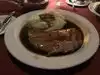 Excellent prime rib dinner with very attentive service. Very old school supper club type atmosphere. Prime rib and sides comes table side on a large cart and is cut right there at the table. All of it was good, the prime rib, the creamed corn and the mashed potatoes. They also "spin" a salad at your table. Definitely recommend and come hungry, the portions are large!