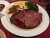 Well the prime rib and the service lived up to its reputation, best prime rib we ever had. Pricy though a party of 6 of us came to 500$. The rib was melt in your mouth tender and flavorful, only negative was the out edge of the rib cut had a toughness to it like a thin tough membrane but the rest was delightful. The creamed corn and mash potatoes with gravy was shockingly delicious, not so much the bread though. We found vegetable sides a bit undercooked for our liking. The staff was very obliging and polite and treated everyone like royalty. If you can afford these prices this is a go to experience, the men in our group all had the largest cut and were very filled in the end, the women had the Larry cut and it was just perfect for them.