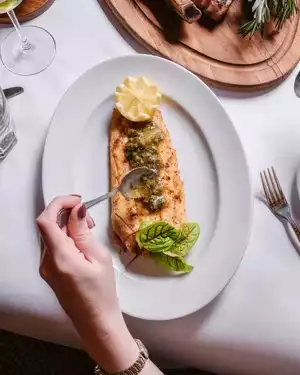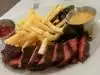 Steak Fritte was A+, the gratin superb, roast chicken delicious, salmon app great as was the very lightly creamed spinach. Beautiful space only down side is you need to enter attached hotel and go downstairs to go to bathroom/wash hands. Excellent bar, very pleasant staff - even comped us some delicious champagne and escargot. We will 100% be back