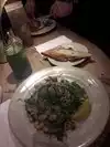 The menu is varied and interesting (at the many locations). The food is tasty but not much in quantity. We tried two dishes which we split. Neither of us was very hungry so we got enough. The wait staff was competent and worked very hard. We were there at 600 pm for a 700 pm Lincoln Center Theater curtain so things were very fast paced. Somehow the food struggled to get out of the kitchen. The little hole in the wall between the kitchen and the dining room seemed just ridiculous for the many plates that need to come through it. The good news is that we were on time for our curtain.
