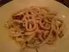 Pleasant staff. I had a yummy ricotta crepe and big arugula with citrus salad. The guys had a pasta with boar meat that they enjoyed. Our 4th had a pasta with swordfish whcih she enjoyed. The starter was an octopus dish hat was very tasty and not rubbery