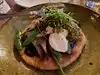 Best tapas I have had for a long time! We were 3 guys sharing 5 plates: grilled octopus, pork belly, shrimp ceviche, avocado salmon toast, sushi dish plus a desert. All of them I can highly recommend. If I’m back in Portland I would definitely revisit. Only miss is we came 30 min early to our reservation and they had no place in the bar or waiting area to sit us so we had to go elsewhere to wait.
