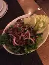 Overall we felt this was a good dining experience. Extensive menu, friendly service, casual dining atmosphere. Prices were a bit on the high side for Thai, but it's a popular spot close to downtown. The food was both very good and mediocre. The som tam (papaya salad) was tasty. Nam tok kor moo yang (BBQ pork neck salad) was excellent. Rice -- both sticky & regular -- was cooked perfectly. However, the gai yang (BBQ chicken) was dry and lacked flavor. It was also served with sweet chili sauce instead of a traditional zesty nam jim (BBQ sauce). The beef balls on a stick were dried out (overcooked?) and came with similar sauce to the chicken (as in Thailand). We arrived early (6'ish on a Thursday) and there were plenty of tables. It did fill up quickly. We'll go back again and try some other dishes to see if the food quality is more consistent.