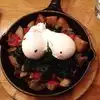 I had the skillet poached eggs on spinach and roasted potatoes Yummy Hubby had the veal gluten free pasta. All the dishes were tasty Cute decor Noise level ok Place was hopping and the Mimosas flew off the bar!