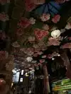 Very different decor with pink ,red and white paper flowers covering the ceiling,I had the lamp chope and creamed potatoes with carrots 🥕 and it was lovely.