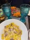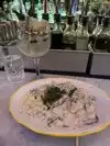 The holiday decorations and atmosphere are amazing. I had the truffle mushroom pasta. Very good. My only issue was actually getting a table. I checked resy, no availability for 1 however tables for 2 were available. So I just decided to try walk in. At the same time I arrived a young lady arrived just behind me. She was a walk in also, no reservation. I was told repeatedly the restaurant had been booked full since September however the young lady was seated to wait for her friend. I asked “why was she seated?” And again told “booked full, you can look for a seat at the bar”. None to be had however there were plenty of empty tables. The host finally gave in and seated me at a table in the aisle, for two. I ordered before her friend arrived and had finished my dinner before she and her friend even ordered. Please, in the future, give single females dining alone, the same service you give all. We just want to experience the holiday fun too.