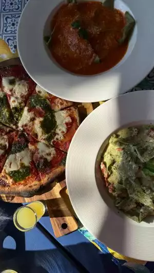 We arrived very early for our reservation but were able to be seated right away. We sat outside having just spent 7 hours on a plane. The bar is limited - only specialty drinks - so my husband was unable to get the martini he wanted. Settled for a Black Manhattan which was sweeter than he would prefer. I stuck to beer. We started with a polenta and gamberi (shrimp) appetizer that was delicious. The 5 large shrimp were perfectly cooked while the polenta was creamy and flavorful. For our mains, I ordered canelloni and and my husband had Pappardelle Pesto e Pollo. Both dishes were rather large portions and very good. My husband's was not very hot but we attributed that to mine being baked and taking longer. But in saying that, I feel mine was a bit overdone. I also must add that at this time the staff is very limited. Our server said that there was only one chef and she was doubling up as server and dishwasher. All in all, if you are in the mood for Italian, this was a good spot.