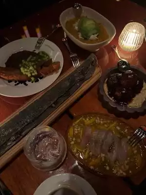 Started out terrible but got better. We had to wait for a table so we went to the bar, and first crack in the paint was, it took forever to get our drinks. To make it worse, we met a couple who was waiting and for their inconvenience, they got prosecco. What did we get? Zero. After 40 minutes we were seated and thank goodness for Saer! He was exceptional! Caring, knowledgeable and personable. A saving grace at that point The design is beautiful, had good energy, service was excellent but it's loud, in case that's not your thing. Now the food... Guacamole was tasty to start off but obviously not a culinary litmus test. The spicy caesar was good, nothing to write home about, Tuna Tartar the same. The Yellowtail Aquachile was delicious, would eat 4 of them and drink the sauce. The Squash Blossom Machete (quesadilla), was so bland, easily the worst dish of the night. Then we were back to yummy with the Pork Belly Chicharron (but can you really have a bad pork belly?) Lastly, the Elote Brûlée was to die for. Drinks? My paloma was super bland. The Margaritas were good. At $350 for two people? Not sure if it's worth it being so hit or miss.