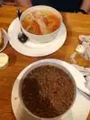 The borschts soup was delicious. Cooked but not overly so as veggies still had texture. Stuffed peppers were very good and filling. Nice coleslaw. Onion rings were frozen and just OK. Nice table service. Fair prices.