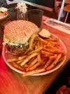The burger here is excellent. We went for lunch on a rainy day and the service was a bit slow. I think they may have been a little overwhelmed by delivery orders.