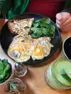Amazing egg with hash brown sandwich!! Rest of the food was so so...burger was a little dry but the service was amazing. Cafe has a nice vibe to it also.