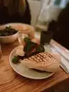Food was good - I had a chicken avocado salad. Latte was solid. Ambiance was nice, music a bit loud. Server was kind and attentive. The management and/or hosting is what I have an issue with. There were a couple people/groups ahead of me on the waiting list, and I was told about 15mins (reasonable). All of the sudden two people poke their heads in, name drop a staff member and are given a nice cozy table. I understand favors for friends, I have managed cafes before. But that seemed very disrespectful to guests and made me almost skip the wait. Maybe if I was a friend of the staff I’d give it a 4 or 5.
