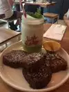 Great food and ambiance. The burger I ordered was on a ciabatta bread and it was really delicious with the beets and the fried egg. The bottom bun actually slipped off somehow and was slanted on one half of my burger (see image). The staff was friendly but due to how busy it was once they took our order we barely saw them especially since we were sitting outside. It took a very long time to find one of the servers for the dessert menu, and we couldn’t really find them again for awhile to ask for the check.