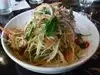 Three of us enjoyed the green papaya salad with peanuts and small dried shrimp; fresh spring rolls with shrimp and pork; lemongrass beef with noodles; and pork, shrimp and crab dumplings in sauce with spinach- also likes the small cucumber pickles. The lemonade with ginger and mint was refreshing. Good service. A bit noisy. Unfortunately, the hip hop music on the TV in the bar area did not contribute to our dining pleasure.