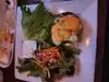 Average food Slow service - waitress was very nice. Took our order right away and brought our beers. We waited for our food and for our check. Had the Buffalo wings - very good. Hubby had the burger and I had the lamb burger. Both were just OK. I read the reviews and was disappointed with our meal - was expecting more.