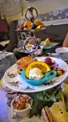 Cozy and Charming place for an authentic afternoon tea experience. Enjoy lovely pots of tea, scones, finger sandwiches and other delectable treats. Perfect place to linger with friends or to relax over tea and treats. The tea services (queens tea, cream tea) are large enough to share. Love the real china, giant tea pots, and mis matched cups. Makes for a delightful afternoon. They have heartier British fare like sausage rolls and shepherds pie for the hungrier visitors. Everyone should visit this charming tea house at least once. Best tea service in the bay area.