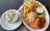 I had the world famous fish and chips, that a friend had recommended. Cole slaw was really old. Both the cod and the French fries must have been prepared when the cook was on a cigarette break. They were left in the fryer too long. Fish was dry and the fries were matchsticks. Disappointed
