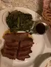 Nice lunch menu pleasant attentive staff Enjoyed a delicious ribs and tri tip combo with greens and a great biscuit with a cinnamon sugar butter spread 🤤😋