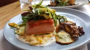Our visit was at lunch time, exellent location and beautiful place. I tried king Salmon plate, they other options specifically salads multiple options. I would recommend to visit and try at least one time