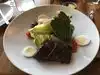 I have had many business meals but the service excellence here is very impressive. Food excellent. Pickle over powers the burger flavor a bit so maybe pickles on the side next time. Constant unobtrusive attention to all by the servers. All my guests liked what they had to eat and all 6 of us choice separate dishes.