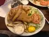 OK...everyone this is your “Hole in the Wall” where the locals eat. The fried fish is either fried pollack or cod....get the cheaper one by $1.00...that would be the pollack. It’s the most popular. CF steak is also great. Don’t forget the Mexican food. I’ve been eating here for over 50 years. Now for the best part...order a large ice cold “Schooner” 🍺that’s 2 beers in a large mug. So cold it will make your eyes hurt. Very dark inside for privacy???