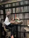When you first see this restaurant from the street, it is not impressive. But once you walk in, you are immediately capitivated by the library of 30k+ albums/vinyls arranged two floors high against one wall. A DJ arrives later in the night to play his own favorites as well as requests. The best part is the overall sound quality that reverberates throughout ... awesome! The food is an interesting mix. We shared a mix (spicey and mild) of fried chicken wings/drumsticks. Outstanding tastes. I really loved the scene, food, and very friendly staff.