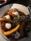 Awesome little place. Great ambiance (DJ rocking vibes on a Thursday night) the place is beautiful and funky. They have a whole huge wall full of old records in back, and little niches were you can sit couples making it really romantic and interesting. It’s really cute and sweet. Good Korean food. Menu could be more expansive, have a bit more choices. The potato wedges and street corn appetizers were great. My pork loin, the bulgogi hamburger and fries, trufle japchae were all tasty entrees. And the mochi were fantastic little desserts. I’d go back. They only take cash or Amex though, so come prepared. Great experience.