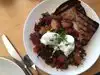 4 of us ordered about 6 different dishes to share, each amazing exCEPT, the chicken which was simply good. I've had (& cooked) better, so next time will just skip it and fill up on all the other awesome things like the poached pear & endive salad, the green beans, the bbq'd pork... Excellent!