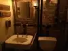Prior to my first visit, I read several reviews and do agree this to be an interesting concept restaurant. The drinks were outstanding, food selections diverse, though not particularly impressive (overall resounding MEH). The Lobster noodles were good, Grilled Octopus was wonderful complimented by a nice white bean salad. The decor was drab, dark and reminiscent of an underground speak easy- however it became way too authentic when I was greeted by a rodent in the co-ed restroom (corner WC). As I was dining with 3 other friends, and tis was early in the meal-I decided to keep that bit of info quiet. I did however find myself glancing around the floor during the meal and felt nervous about the overall sanitation of this place. Overall pretty grungy even by Tribeca standards
