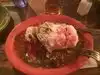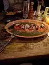 Called in here to try something different, and it certainly was that! The outside of this restaurant is all decked out in very colourful lights, but that's nothing to what you see on the inside. It was extremely colourful, with lovely multi coloured crockery on the tables. We were early enough so we can't judge the atmosphere as there was nobody else there when we arrived. We were seated at high stools and tables towards the front of the restaurant. I see from other reviewers that there is also seating upstairs. A huge bowl of tortilla chips with accompanying dips was brought to our table. We ordered Shrimp Alambre and a Chicken Torta for our meal. I have to admit, when I saw the Refried Beans on the plate I was really taken aback. They are black, in a black sauce, and looked like something you would sandwich bricks together with if you were building a house! I ate the rest of the meal, but I did struggle with it due to the Refried Beans. It was an experience to be in a very different type restaurant but I wouldn’t be in a hurry back.