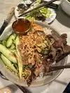 This place seems to have relaxed its standards since its past stellar ratings. Decent summer roll, dipping sauce lacked flavor. Shrimp salad, mint leaves, bamboo shoots, lots of jicama. Spicy, nice.Squid salad, very fresh, good breading. Nicely chewy sauteed noodles, crabmeat and shrimp, good serving of crabmeat on top, 3 so so sautéed shrimp. strange butter based sauce. Dish lacked herbs, salt.
