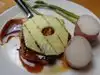 Located in the Four Queens Hotel & Casino. My wife and I dined here for lunch. We both had an Iced Tea (the refills were plentiful, even during a shift change). My wife had the Chicken Teriyaki with the soup of the day. I had the Pork Chop with dinner salad. Both came with excellent red potato's and asparagus. I forgot to mention that I am a 55+ member in their players club for a 10% discount (oh well). The service and food were excellent on this visit. I added many photos of our visit. I will return.