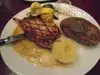 We ordered the Ribeye Steak Dinner cooked medium rare and they arrived just perfect! The vegetables were fresh, hot and delicous. Neither of us could finish the whole steak so had take away. The service was friendly, professional and attentive. We will return to dine here on our next Vegas vacation!