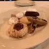 It is rare that I use the word “flawless” when it comes to a visit to a restaurant. Our meal at Maialino was flawless, perfect, outstanding and every other superlative you can imagine, from the minute we arrived until we departed almost three hours later. Immediately upon seating, the server approached and asked if we wanted water and offered the food and drink menus. We ordered a couple of orders of the Prosciutto e Mozzarella for the table, which included several slices of prosciutto and a half-ball of buffalo mozzarella. The sliced meat was soft and delicious with just a hint of saltiness and the cheese was almost burrata in texture with a soft crust and creamy interior. We followed the first shared dish with the Insalata, mixed greens, anchovies, pecorino cheese and topped with breadcrumb s ($18). This was fantastic, perfectly dressed with fresh flavors and the crunch of the breadcrumbs was a nice added feature. The server described the special and it was right up my alley. It was 28-Day dry aged duck breast atop chicken and duck liver mousse, blueberries and rhubarb. It was incredible. The duck breast was served medium, with a deep rich flavor, complemented by the richness of the mousse and lighted by the blueberries. I really liked this dish. My wife ordered the Pollo alla Diavola, a half of a chicken, bathed in a vinegary sauce of black pepper and pickled chili. The chicken was perfect, moist inside with perfect skin from a large weight that kept the chicken fully engaged on the flat-top. This is one of the best dishes and one of the best chickens I have ever eaten. For dessert we enjoyed the Assorted Cookies, while I was able to sneak a few bites of the Tiramisu. The latter was absolutely delicious, with perfect balance of the ingredients. Overall, our meal at Maialino was flawless, perfect in every aspect of the dining experience.