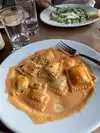 Inviting restaurant with open doors all around - lovely for a warm evening. We had not booked a table but arrived early before 7 pm and we were offered a table straightaway. The staff was friendly and the service prompt. The big surprise was that the restaurant does not take cards.... but cash only. The portion of ravioli was small. The flavours were good.
