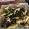 Good atmosphere in the restaurant. There was someone playing music outside and there was a wonderful buzz of life. The food was nothing special. We had pasta with mushrooms and chicken and pasta with meatballs. Both lacked flavor and did not appear to be fresh ingredients.