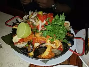 We were visiting New York celebrating my fiances birthday. I love paella so this is what I had. I wasn't impressed with it, the flavors were off and it was very under seasoned. The huge lobster and crab claw on top made it awkward to eat. It also had calamari, clams, oysters shrimp and mussels. They also provided a lemon wedge, but it tasted like it was overpowered with lemon juice already. It was definitely authentic but I was very disappointed in the taste.