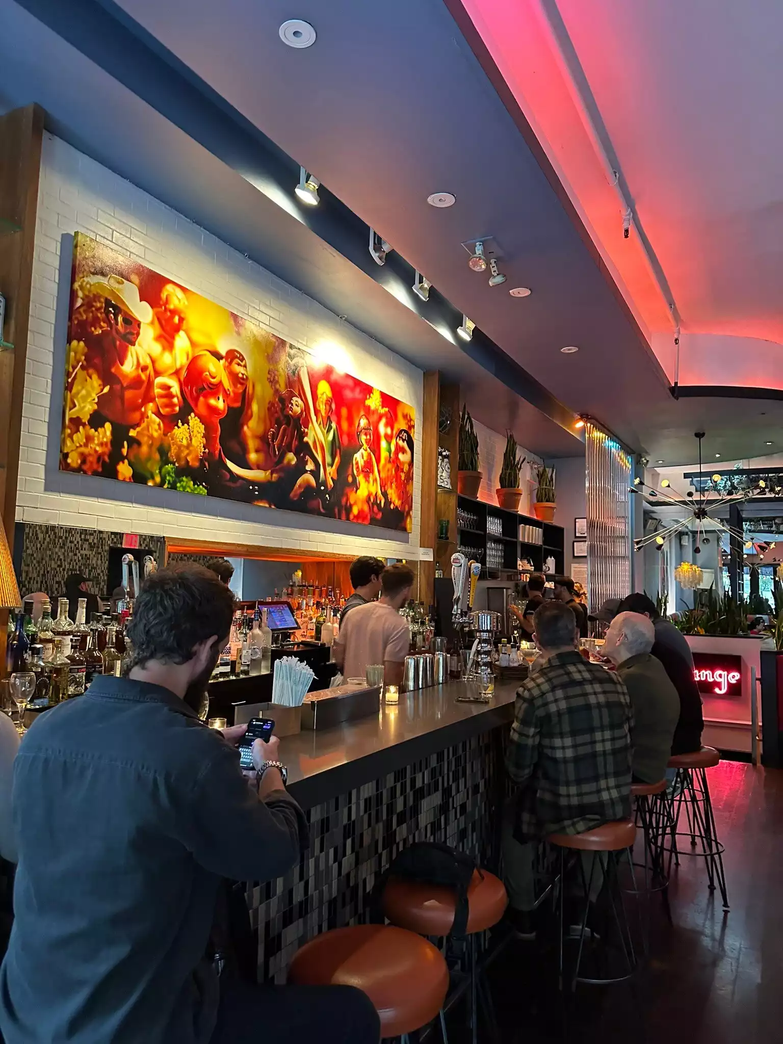 Easy laid back vibe. Casual dining. Take out or eat in. Great tasting food with yummy shakes. Near time sq.