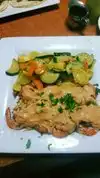 When we got there , there was one table filled so we were worried about the good reviews we had read but it was wonderful! I got the shrimp wrapped in bacon with cheese and sauce. It was so delicious . It came with grilled veggies and cilantro rice. I told my husband that I could have just eaten the rice and been happy. Mine was only $13.95 - what a bargain I'm ready to go back right now.