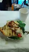 Warm attention and greats sandwichs made of salmon.... prawns... chicken... etc. They will offer you fresh water and a seat at the counter. They also serve in a plate, but the key is the grill. I tried twice a prawn Sandwich and was delicious. I'll be back!