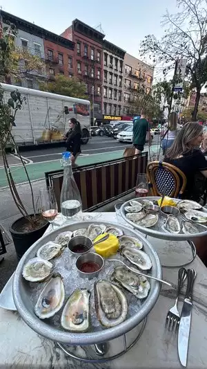 Very nice restaurant even if expensive. Food was good and our waiter Henri was the perfect host, really "aux petits soins" for us.Oysters were very tasty with their 2 sauces and lemon. Meat was cooked like requested ( just a little too much pepper fot the cook ) , quantities were big for people being afraid of not having enough. My daughter took a strawberry mule mocktail and it was really tasty compared to many mocktails in NY. We decided to eat on the outside terrace to enjoy new york street life.